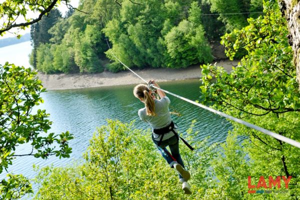 NATURA PARC : un parc aventure dans les bois avec plusieurs parcours accrobranche et une tyrolienne au-dessus du lac.